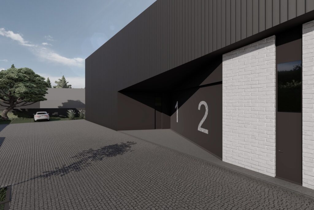 Cada unidade dos Armazéns da Ribeira terá cobertura em painel “sandwich” e portões seccionados que permitem o acesso de veículos pesados, garantindo funcionalidade e conforto para as suas operações.