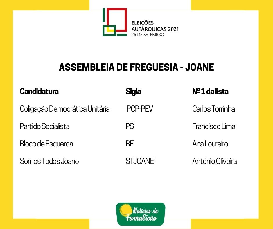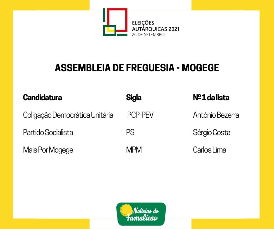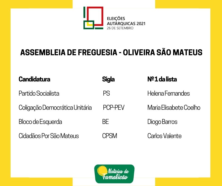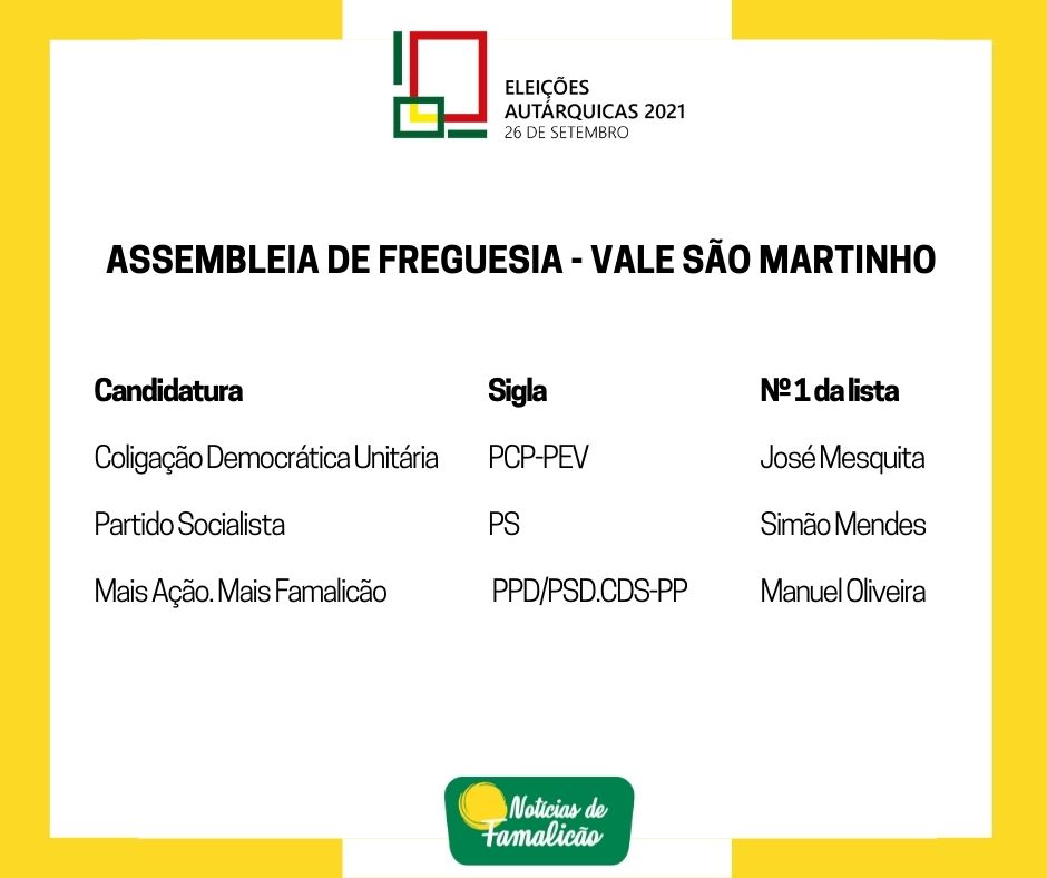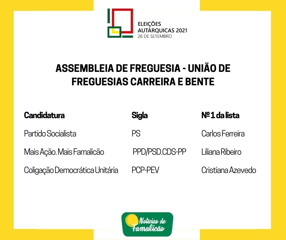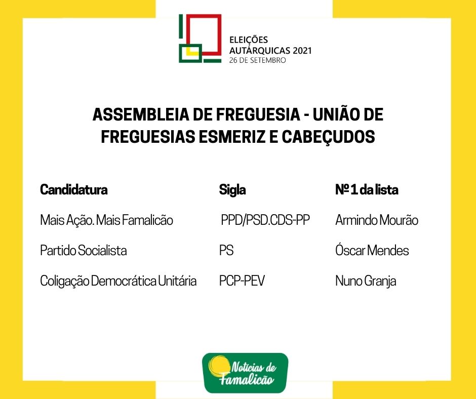 Candidatos às Assembleias de Freguesia