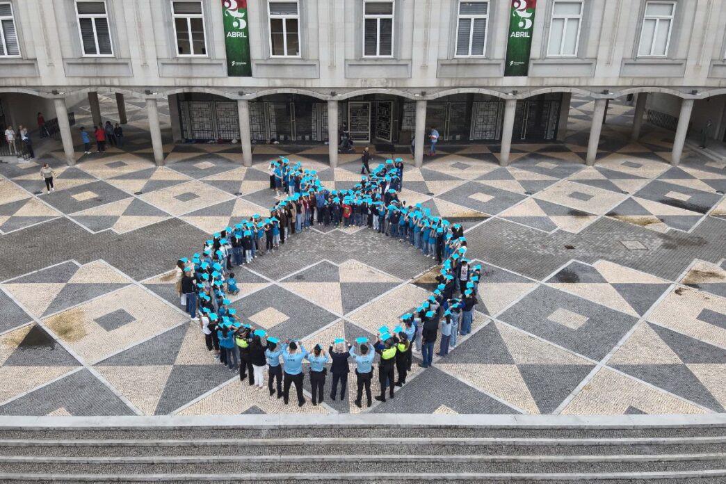 Mais de uma centena de crianças e jovens “pintaram” os Paços do Concelho de azul na manhã desta quinta-feira, 30 de abril, ao formarem um laço humano com o objetivo de alertar e sensibilizar a comunidade famalicense para problemáticas como a violência doméstica e o mau trato físico ou psicológico.